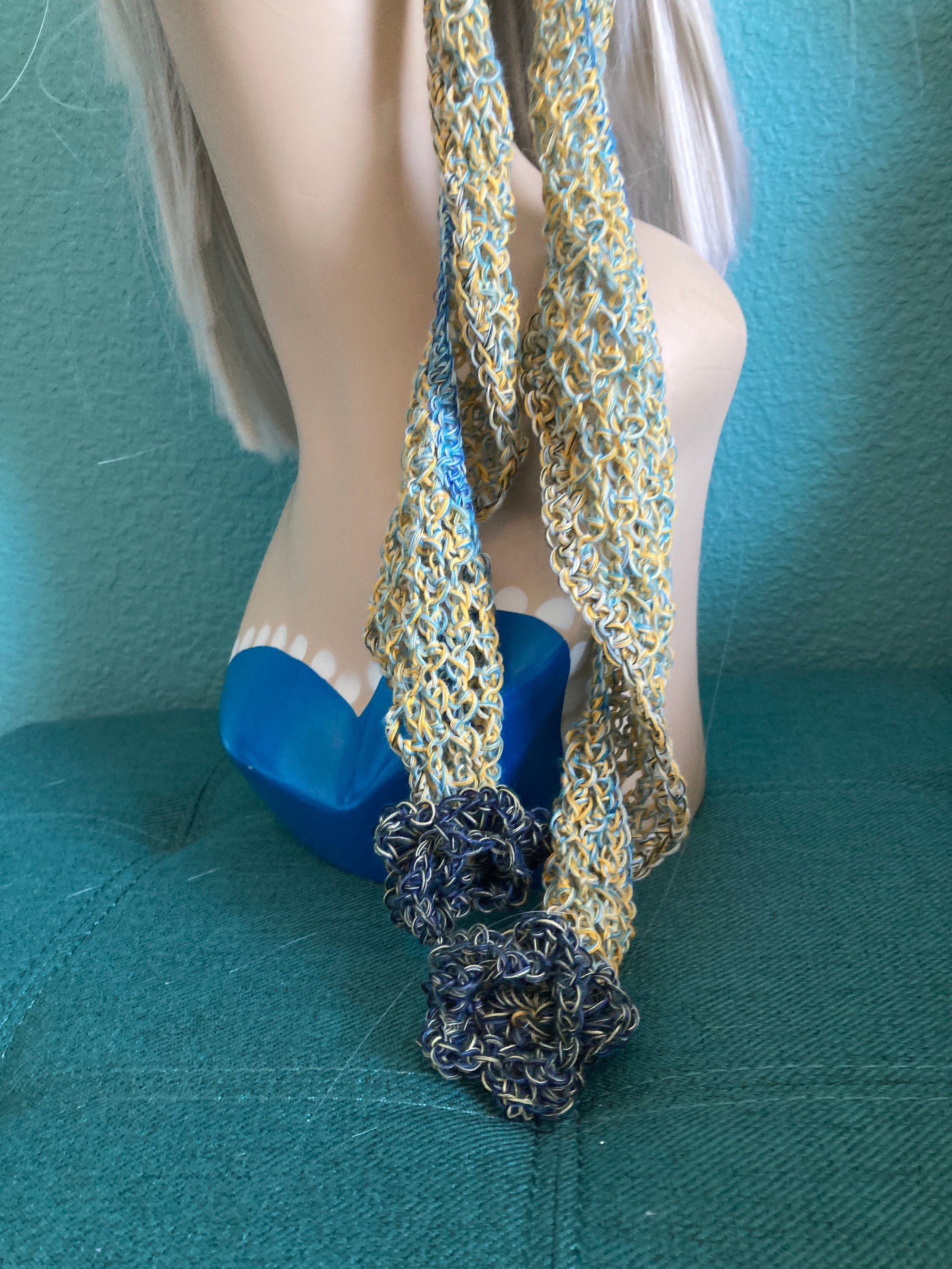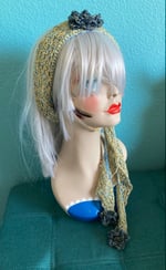 Turn head in the one of a kind, super slinky headscarf. Handmade crochet in the softest cotton crochet threads. Pretty greens and blacks, these roses are so cute.
