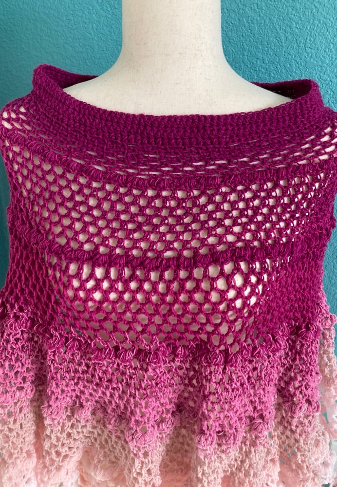 Handmade Crochet Lacy Poncho Bon-bon Rose