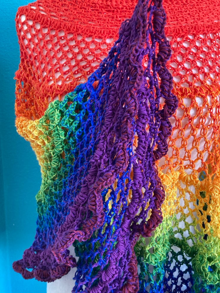 Beautiful and Vibrant… This handmade crochet poncho in Rainbow is perfect for all things Festival…